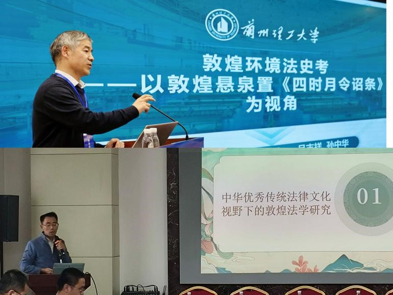 在主旨报告环节,吕志祥教授以《敦煌环境法史考——以<四时月令诏条>为视角》为题,提出应汲取《四时月令诏条》中的智慧,以助力当代生态文明和环境法治建设、推进“人与自然和谐共生”。分组汇报阶段,穆永强副教授围绕“敦煌争讼文书所见唐代民间纠纷解决诉讼机制及其当代启示”这一主题作学术报告,着重阐述了敦煌优秀传统法律文化创造性转化和创新性发展的重要意义。研究生薛泽堃以《敦煌莫高窟彩塑壁画中的法律观念:探赜索隐与当代价值》为题做交流发言,研究生孙中华以《“大历史观”视角下敦煌法学的研究对象》为题做交流发言。公司师生的敦煌法学系列研究成果获得了与会专家学者的充分肯定。