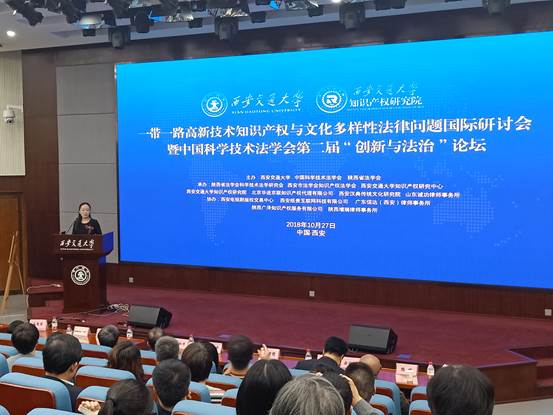 10月27日,由西安交通大学、中国科学技术法学会和陕西省法学会主办,陕西省法学会科学技术法学研究会、西安市法学会知识产权法学研究会、西安交通大学知识产权研究中心、西安交通大学知识产权研究院、北京华进京联知识产权代理有限公司和西安汉典传统文化研究院承办的2018知识产权·丝路论坛“一带一路高新技术知识产权与文化多样性法律问题国际研讨会”暨中国科学技术法学会第二届“创新与论坛”论坛在西安举办。